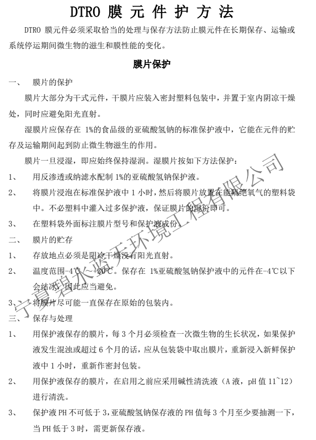 DTRO膜元件保護(hù)方法